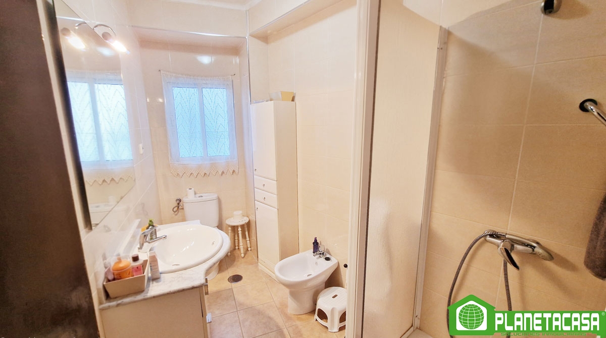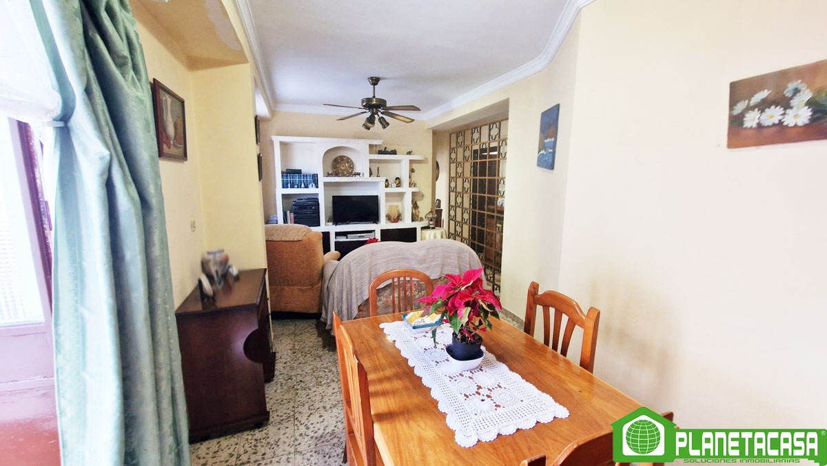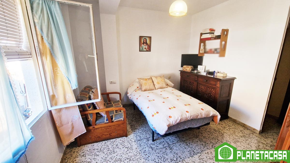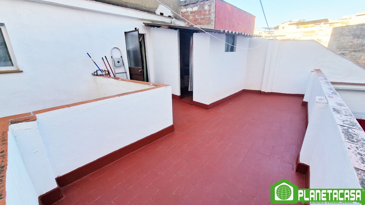 La primera planta, cuenta con salón-comedor, cocina independiente, 2 dormitorios y baño completo con ducha. Se encuentra en buen estado de conservación aunque necesita algunas renovaciones, además cuenta con un gran balcón a la calle y una terraza/patio trasero de grandes dimensiones, soleado por las mañanas.