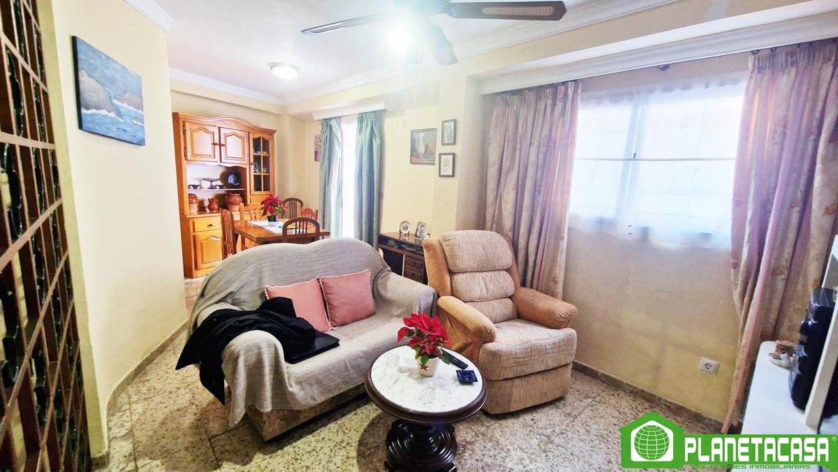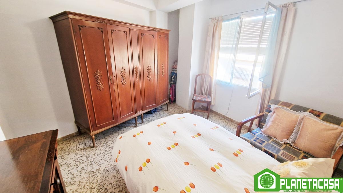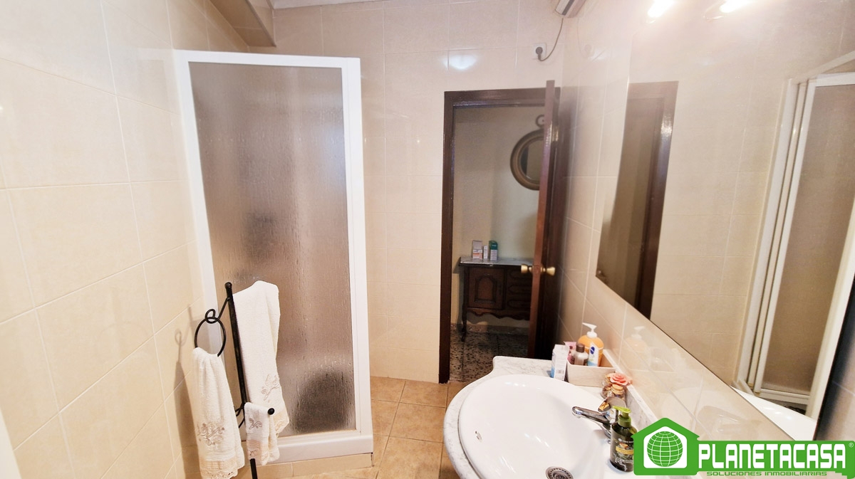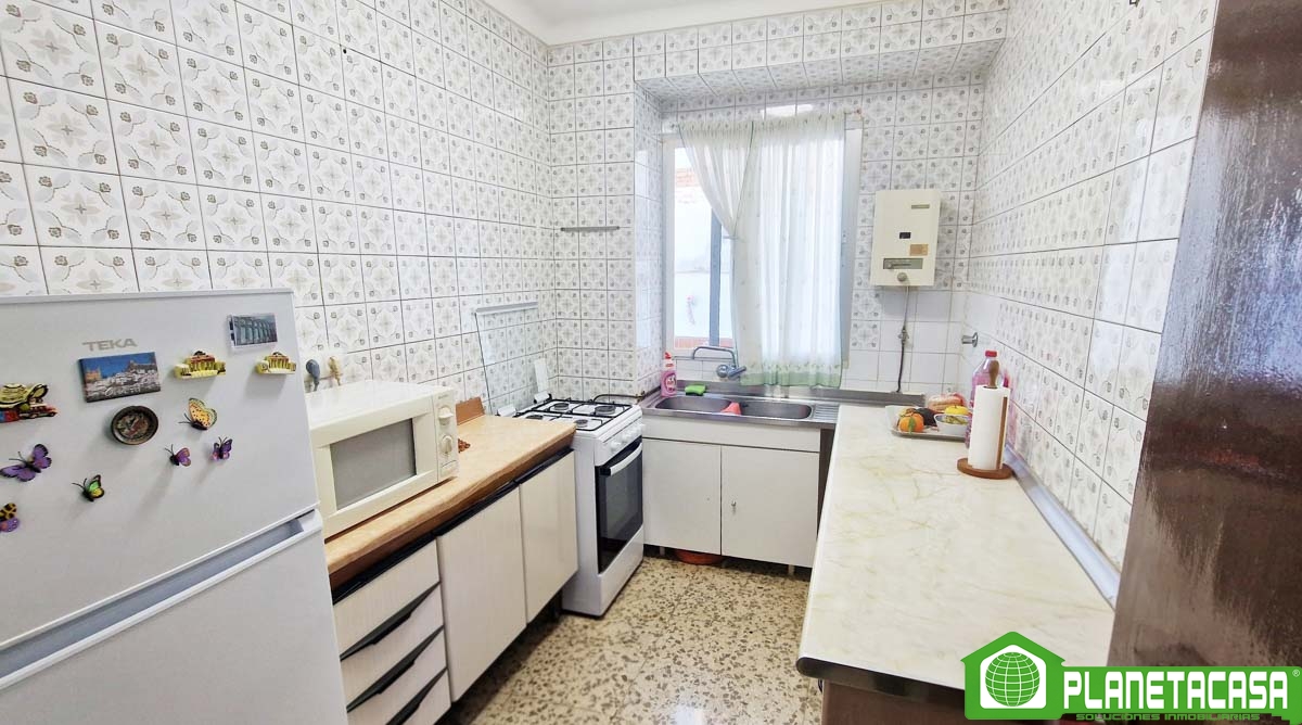 La primera planta, cuenta con salón-comedor, cocina independiente, 2 dormitorios y baño completo con ducha. Se encuentra en buen estado de conservación aunque necesita algunas renovaciones, además cuenta con un gran balcón a la calle y una terraza/patio trasero de grandes dimensiones, soleado por las mañanas.